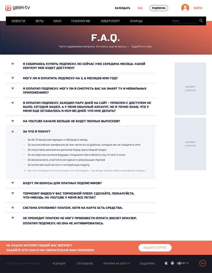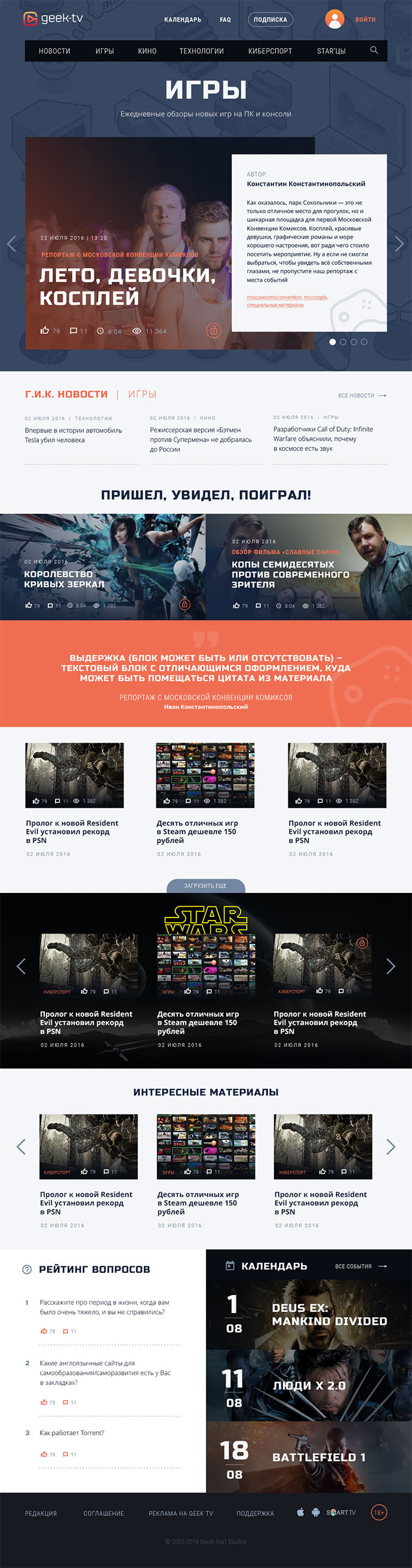 Geek-TV.ru — развлекательный видеопортал о виртуальных и цифровых развлечениях. Это не только игры, но и кино, интернет, Hi-Tech. Интересы у современной молодежи и, тем более, взрослых людей разные. Поэтому замыкаться на чем-то одном, считаем, неправильно.Помимо основного сайта, Geek-TV активно ведет youtube-канал, а также выпущены специальные приложения на всех основных платформах (iOS, Android, Smart TV).
