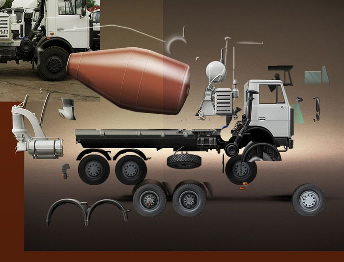 Иллюстрация бетономешалки для сайта «Бон-Бетон»