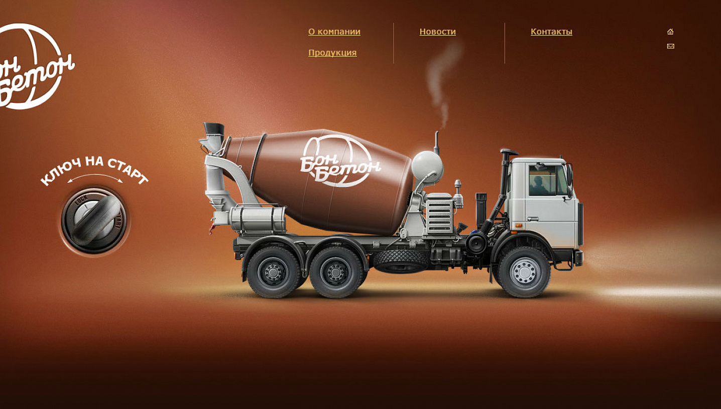 Отретушированная фотография бетономешалки украшает главную страницу сайта