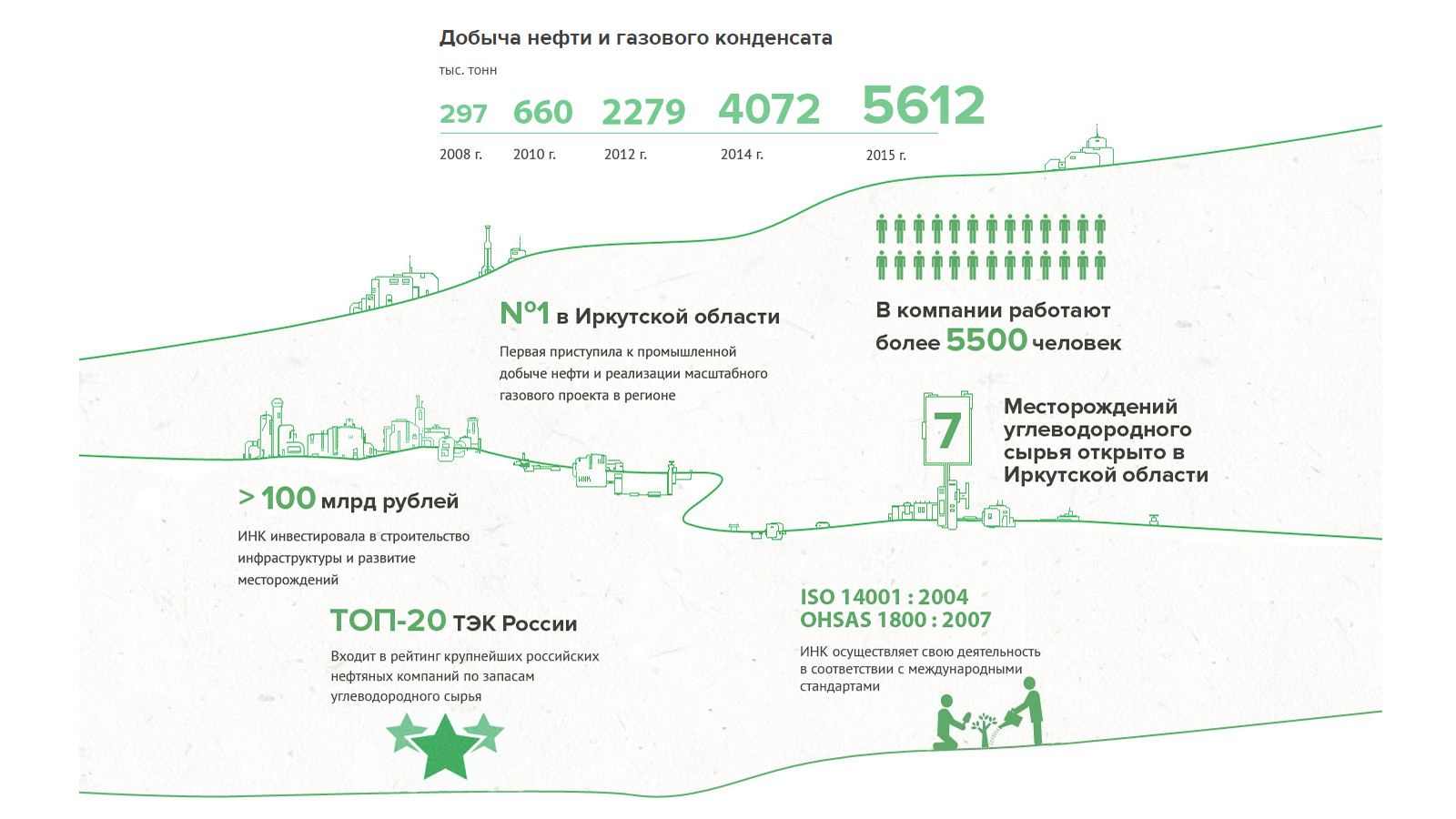 Иркутская нефтяная компания (ИНК) является одним из крупнейших независимых производителей углеводородного сырья в России. Компания и аффилированные с ней юридические лица (группа компаний ИНК) занимаются геологическим изучением, разведкой и добычей углеводородного сырья на месторождениях и лицензионных участках недр в Восточной Сибири и Республике Саха (Якутия).