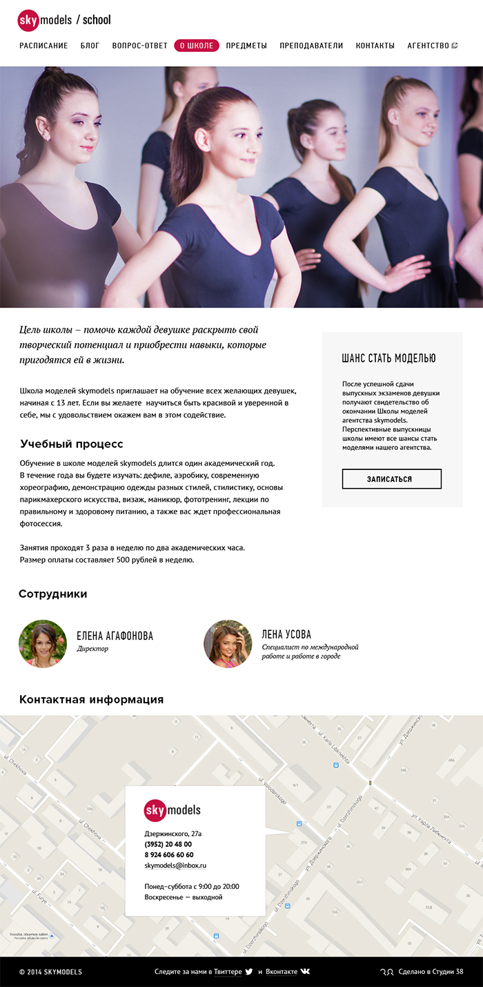 Sky Models — базирующиеся в Иркутске международное модельное агентство и школа, которая находит и обучает будущих звезд модельного бизнеса. К нам обратились за разработкой сайта, презентующего оба направления работы компании.